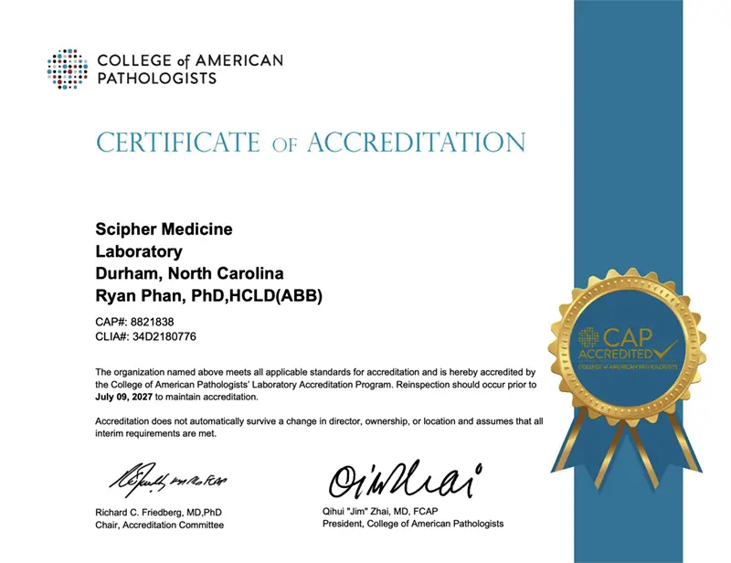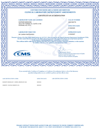 Certifications CLIA Certification California Lab License Maryland Licensure New York Lab License Pennsylvania Lab License Rhode Island Lab License CAP Certificate of Accreditation